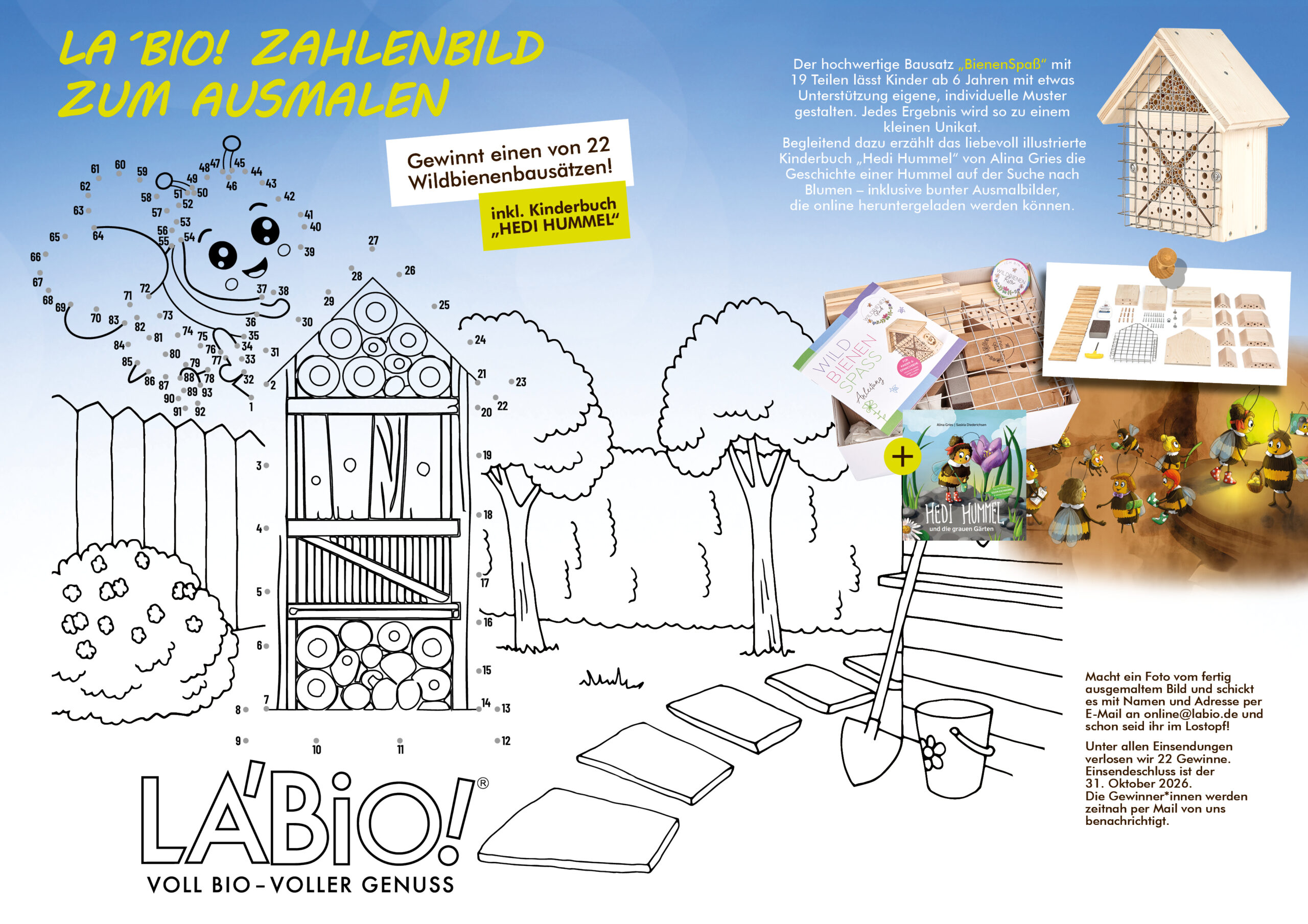 Unter allen Einsendungen verlosen wir je einen von 22 Wildbienenhotelbausätze von der Firma „Wildbienen Glück“ inkl. Kinderbuch an Kindergärten und Grundschulen. Einsendeschluss ist der 31. Oktober 2026. Die Gewinner*innen werden zeitnah per Mail von uns benachrichtigt.